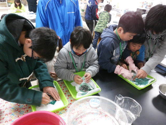 今回の出張教室では、科学技術館の演示・実験スタッフによる工作教室「エッチングでステンレス鋼板に絵を描こう」、実験教室「君は知ってる?鉄のこと!」を開催し、小学生から大人まで多くの方に参加いただきました。